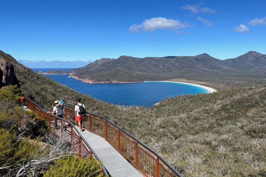 🏔️ The hike: A moderate 1.5-hour return walk (3km total) that leads to the famous Wineglass Bay Lookout. The view from the top? Absolutely breathtaking. Imagine crystal-clear blue water meeting soft white sand, shaped perfectly like a wineglass.
